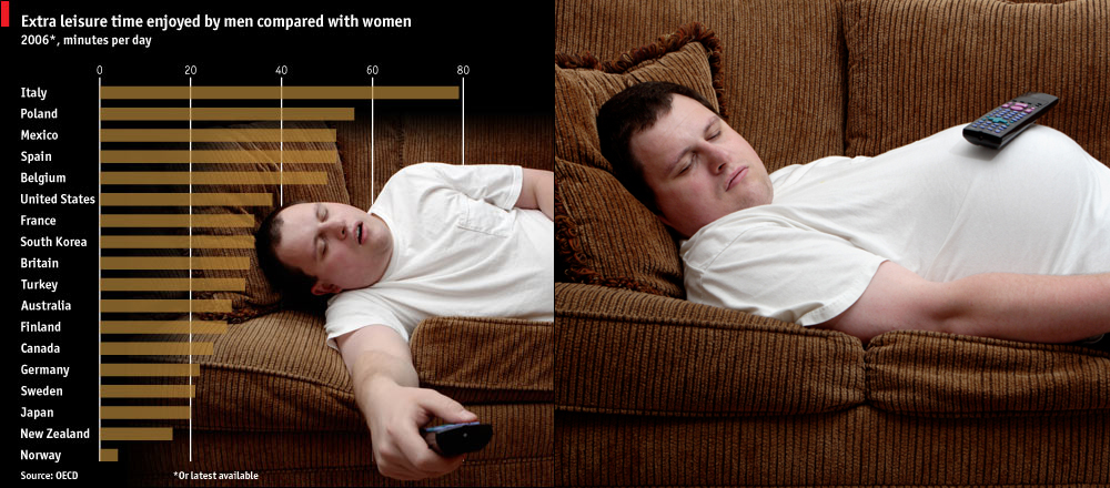 And sure enough. Back up a few weeks in our blog, and there he is, lending credibility to a graph about Leisure Time from The Economist magazine (above left). I’ve taken the two images and combined them side-by-side so that there’s no mistaking the fact that both pictures must have been taken at the same time. I don’t know if the person who created that graph for the Economist had access to both pictures, but if so, I agree that they picked the better one.