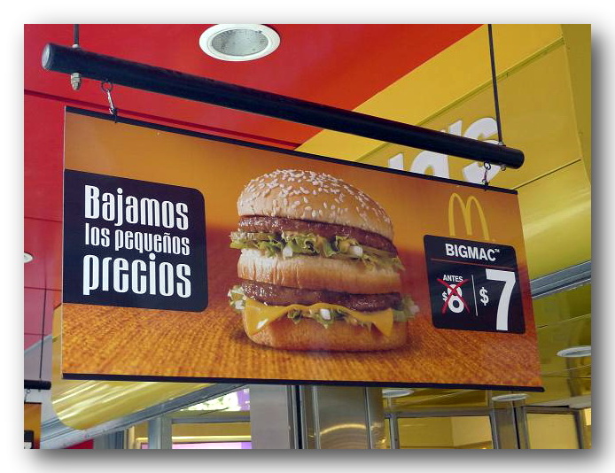Today we received documented evidence (see photo) from Matthew, in Buenos Aires. It looks like the 11.50 peso Big Mac is now going for 8 pesos, no make that 7 pesos!