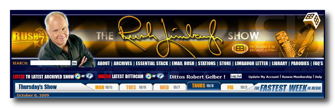 I’ve copied my logged-in web page at rushlimbaugh.com below, so you can see for yourself my certified ditto-headness. Look for yourself right in the middle of that image and you will see that El Rushbo is proclaiming: