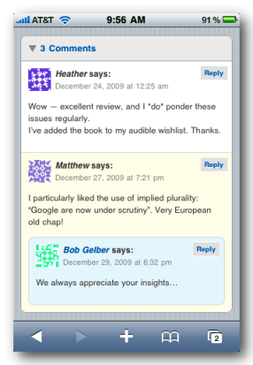 I’m prejudiced, but I think it’s quite attractive. And while I’d like to say WordPress does this just for us, the truth is that all WordPress-hosted blogs enjoy this feature. Just another reason to go with WordPress.com in case you are thinking of starting your own blog.