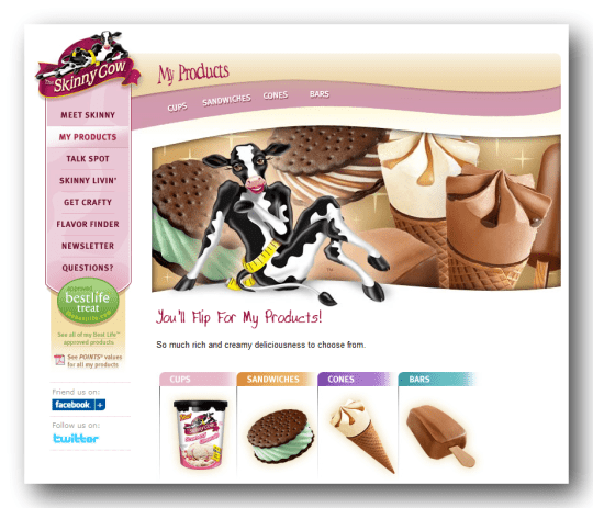 I’m a fan of Skinny Cow products. Not only do they taste good, but their ‘spokes-cow‘ reminds me of the old Gateway computer boxes and appeals to my inner geek.