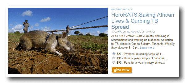 In addition to earning their stripes as mine detectors, the giant rats are also trained in health work: detecting cases of tuberculosis. Possible TB sufferers provide samples of sputum, which are then handed over to the rats to sniff out. This detection process turns out to be much faster than your typical microscope examination. A technician with a microscope in Tanzania can screen about 40 samples a day, while one giant rat can screen the same amount in seven minutes.