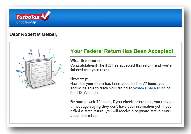 This from my inbox, where I am being Congratufuckinglated for having the IRS Accept my return.