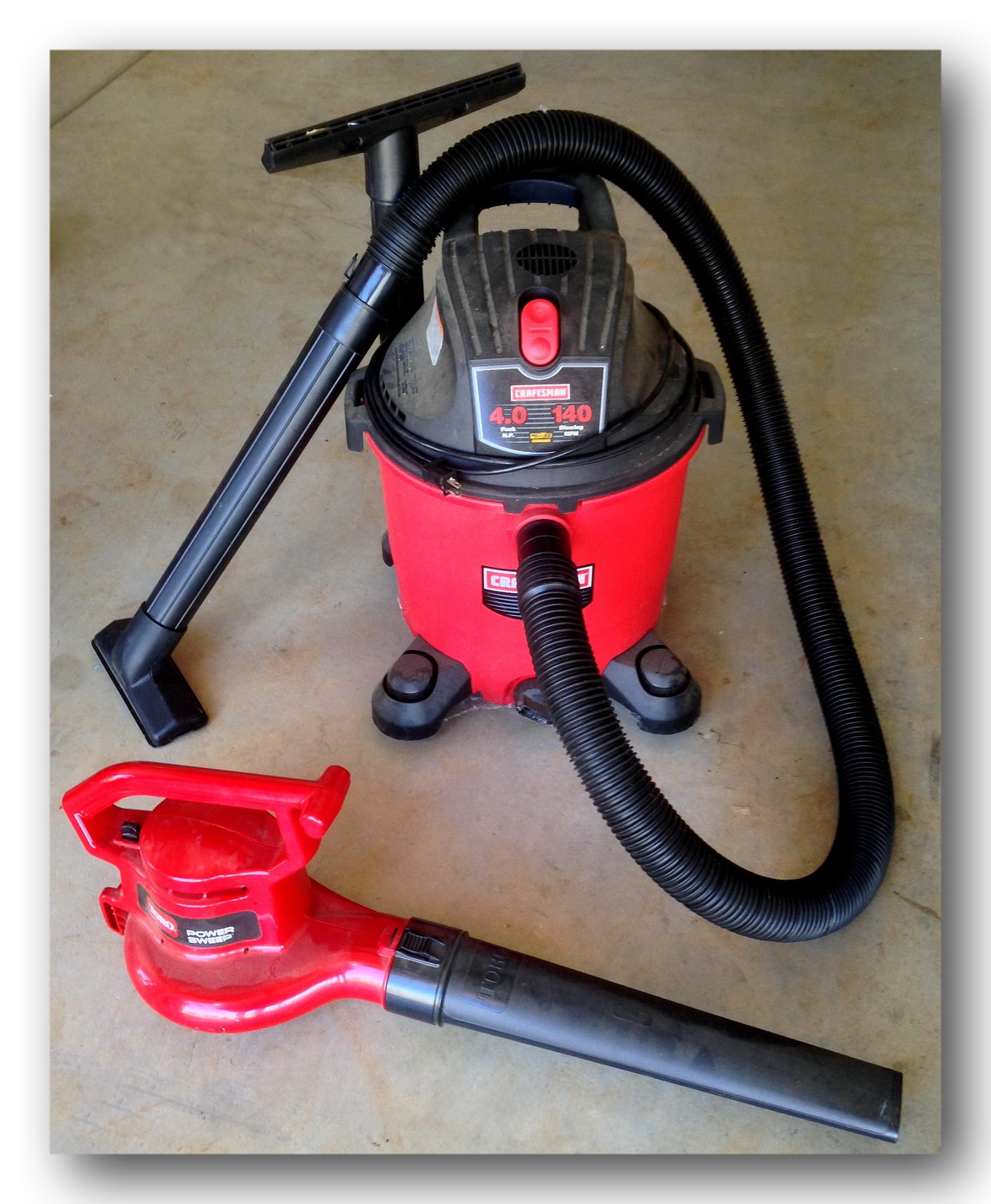 I’ve always used the Shop Vac to clean up my garage (shop). I’ve always used the Leaf Blower to clean up leaves from sidewalks and driveways. Never questioned that division of labor.